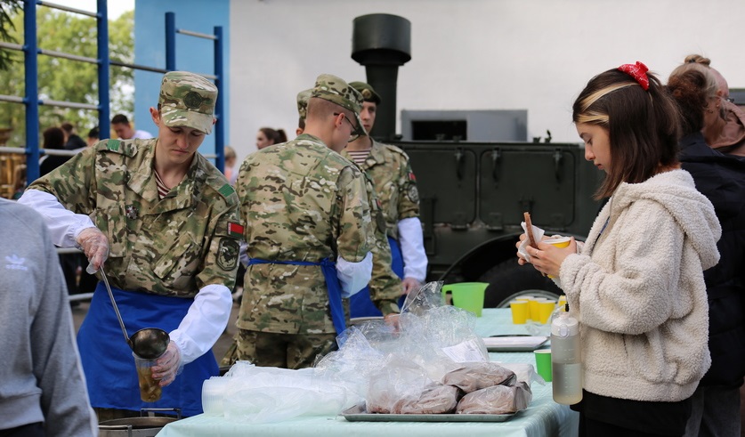 Но спорт - это не только соревнования. Для участников были подготовлены познавательные локации и разнообразные дегустации. Конечно, не обошлось и без вкусной еды: после активностей гостей ожидали ароматная уха и солдатская каша! Отличным дополнением на свежем воздухе стал огромный самовар, наполняющий воздух ароматным чаем.
