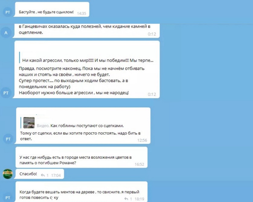 В марте текущего года задержан 26-летний могилевчанин, который в различных Telegram-чатах призывал к применению насилия в отношении сотрудников органов внутренних дел.