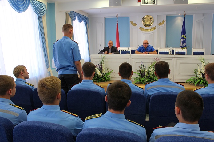 В управлении Следственного комитета Республики Беларусь по Могилевской области состоялась встреча начальника управления генерал –майора юстиции Александра Ракусова с курсантами Академии МВД Беларуси, проходившими производственную практику в следственных подразделениях Могилевской области.