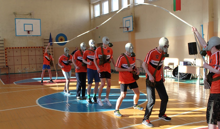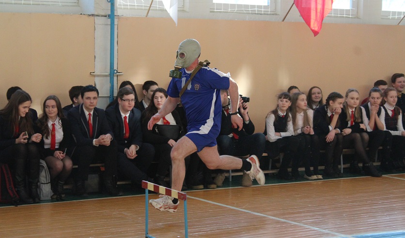 Организаторы соревнований подготовили участникам серьезные испытания: четкое выполнение команд в выступлении по строевой подготовке, совмещенная эстафета-разминка, в которой все участники, одетые в противогазы, должны были не только быстро бегать, ловко перепрыгивать барьеры, но и отвечать письменно на вопросы.