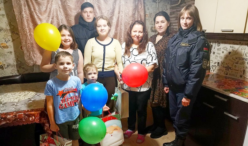 Начальник Докшицкого РОСК с коллегой из прокуратуры посетил семью. Дети радостно встретили гостей и обрадовались вниманию и подаркам.