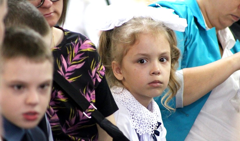 В начале торжественной линейки присутствующие дружно исполнили гимн Беларуси. После чего звучало много поздравлений и теплых слов в адрес учеников и педагогов. В зале царила атмосфера единения. А во время звучания многим известной песни «Учат в школе», которую исполняли выпускники вспомогательной школы, присутствующие подпевали им. Когда слово предоставили священнику Витебской епархии Белорусской Православной Церкви протоиерею Александру Мозолеву, он поздравил ребят с праздником и предложил всем помолиться. Священник - частый гость в школе. Он на добровольных началах проводит уроки, и ребята с радостью бегут на его занятия.