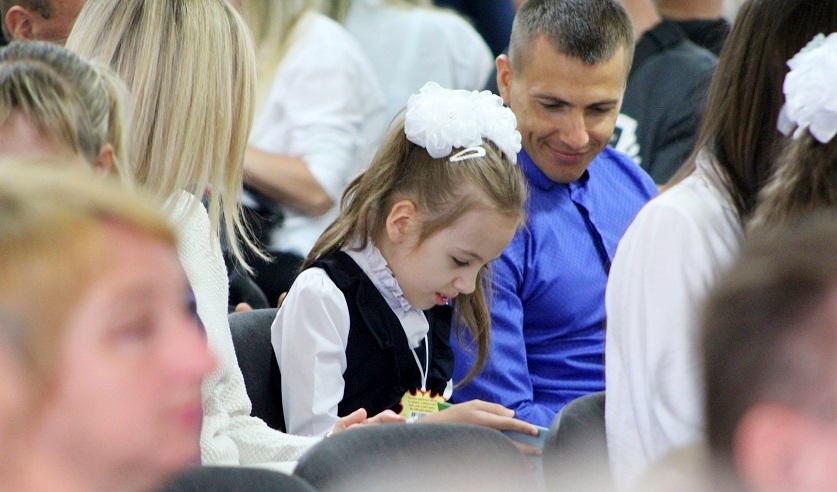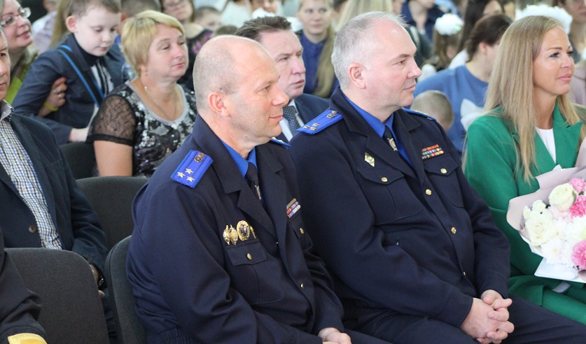 Начальник управления Следственного комитета по Витебской области Александр Гуцко также поздравил педагогов, учеников и их родителей с Днем знаний и вручил первоклассникам наборы школьных принадлежностей. «Начало нового учебного года – это начало нового, интересного и увлекательного пути учащихся. Пусть этот год станет для вас познавательным. Родителям учеников желаю терпения в труде, ведь это труд – учиться каждый день вместе со своими детьми. Педагогов благодарю за работу с детьми и желаю всем здоровья, успешного и легкого учебного года», - отметил Александр Николаевич, выступая на торжественной линейке.