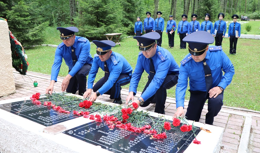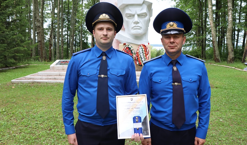 В этот же день вблизи братской могилы, расположенной на берегу озера Лосвидо в Витебском районе, следователям вручили погоны и награды.