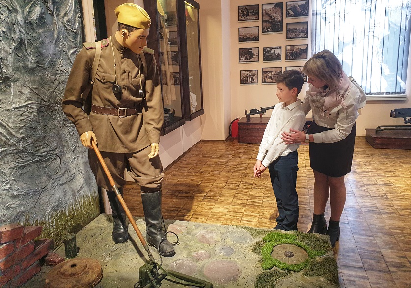Подходит экскурсовод и проводит нас в зал. Рассаживаемся, начинается рассказ… Гид напомнил о геноциде белорусского народа в годы Великой Отечественной войны… Рассматриваешь экспозицию, слушаешь внимательно и замираешь, хоть ты и знаешь все приведенные экскурсоводом примеры жестокости фашистов в годы войны из рассказов родителей, которые с детства передавали историю стойкости, патриотизма и желания жить, несмотря на все лишения, наших родственников и земляков. Родители с детства водили тебя на все парады 9 мая, и ты, вручая букет тюльпанов дедушкам и бабушкам, у которых были медали на кителях и пиджаках, точно знал, кто они и что им обязательно нужно сказать: «Спасибо! Спасибо за Победу! За мир!».