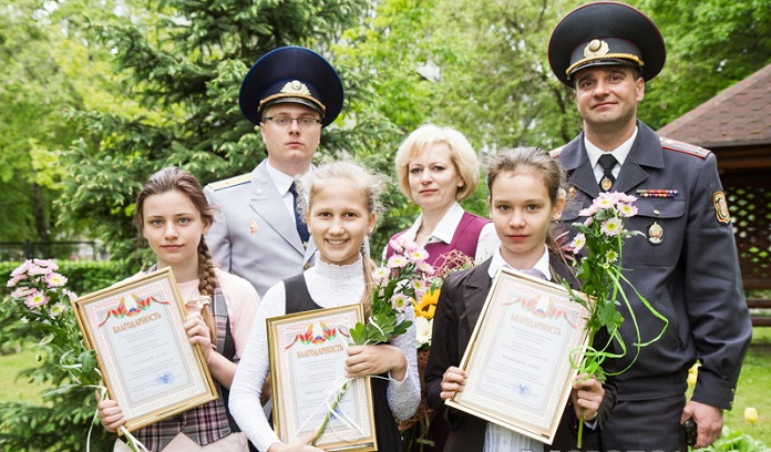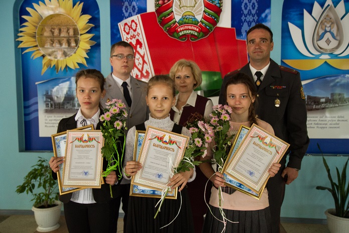 Старший следователь Новополоцкого ГОСК Елена Быкова вручила девочкам благодарности начальника отдела, а заместитель начальника Новополоцкого ГОВД Владимир Шендель – денежные премии каждой. Представители обоих ведомств поблагодарили школьниц за проявленную смелость, решительность и активное участие в задержании преступника, а их родителей и педагогов гимназии – за воспитание школьниц.