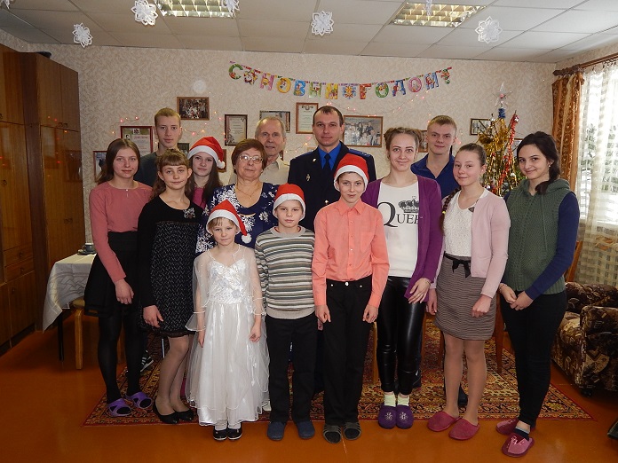 Следователи Оршанского межрайонного отдела Следственного комитета 5 января посетили Дом семейного типа семьи Пашканес в деревне Есипово Оршанского района. Этот гостеприимный дом уже много лет является семьей для мальчишек и девчонок, которых взяли на воспитание Галина Тимофеевна и Владимир Антонович Пашканес. За время 20-летнего существования эта семья воспитала 30 приемных детей. В данный момент у них находится 6 приемных детей, которые с радостью встретили следователей накануне Рождества.