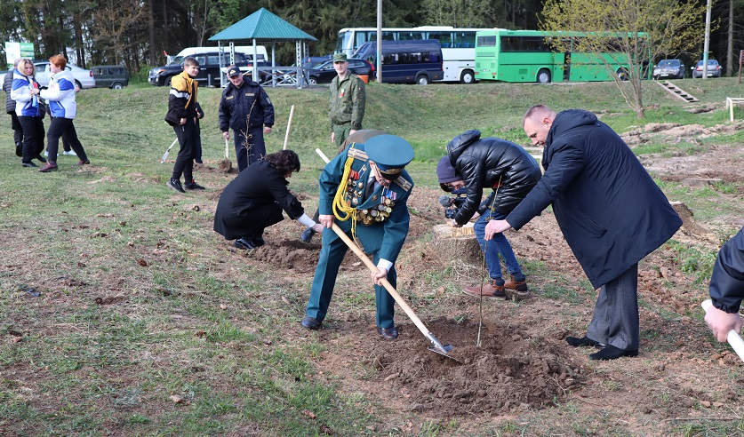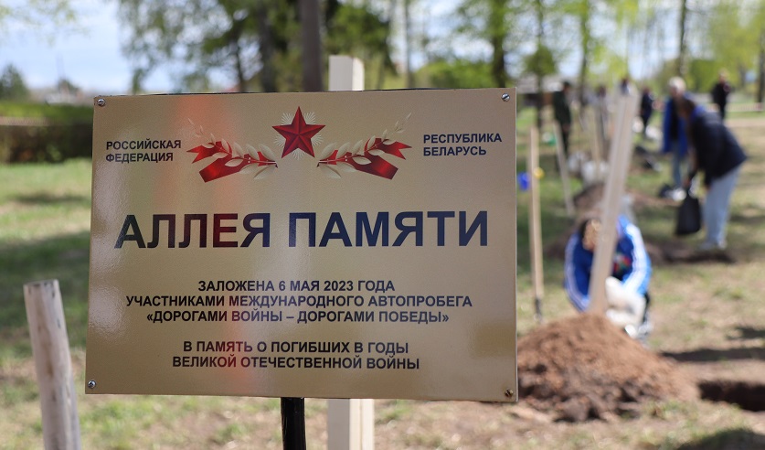 В память о погибших бойцах участники автопробега вместе с россиянами высадили 15 дубов, привезенных из Беларуси.
