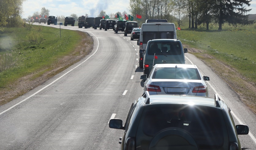 огромная колонна техники направилась в Полоцк. Там, на площади Свободы, собрались местные жители и власти города, чтобы встретить участников