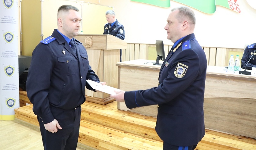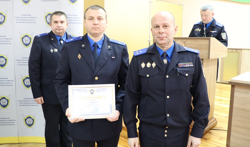 Ряд сотрудников, достигших высоких результатов в служебной деятельности, получили свои заслуженные награды из рук Олега Шандаровича и Александра Гуцко. В частности, не остался без внимания и поступок старшего следователя Миорского районного отдела Следственного комитета Александра Валевко, который в декабре прошлого года спас тонущего рыбака. За совершение героического поступка следователь награжден грамотой Совета офицерского собрания.