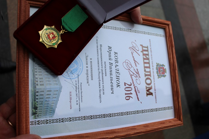 Почетное звание «Человек года Витебщины» за 2016 год в номинации «Закон и порядок» присвоено начальнику Шарковщинского районного отдела Следственного комитета подполковнику юстиции Ковалёнку Юрию Винальевичу.