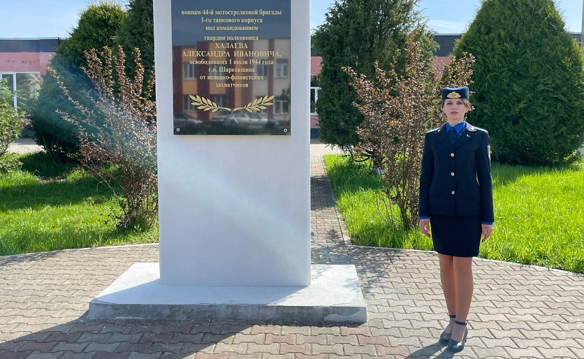 «Я родилась в Браславе. В настоящее время прохожу службу в Шарковщинском РОСК. На площади 1 Мая в г.п.Шарковщина установлен памятник, на котором имеется текст: «В ознаменование 20-летия Победы советского народа в Великой Отечественной войне 1941-1944 гг. воинам 44-й мотострелковой бригады 1-го танкового корпуса под командованием гвардии полковника Халалева Александра Ивановича, освободивших 1 июля 1944 года г.п.Шарковщина от немецко-фашистских захватчиков».