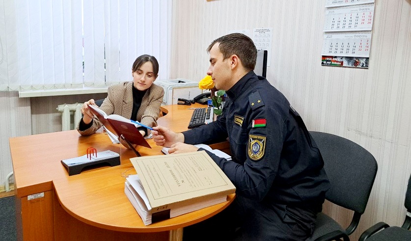 «Когда я только вливалась в работу, коллектив активно поддерживал меня, а сейчас и я оказываю помощь молодому следователю Кириллу Чиркуну, являясь у него наставником. Раньше Кирилл служил в Витебске. Однако специфика работы в областном центре и в районе немного отличаются, поэтому я помогаю подопечному освоиться на новом месте. В течение рабочего дня изучаю уголовные дела и материалы проверок, находящиеся у него в производстве, при необходимости подсказываю, направляю. Сегодня помогала осматривать чугунную плиту, которая была похищена из дачного дома нашего района, а позже изъята по месту жительства подозреваемого», - говорит о работе следователь.