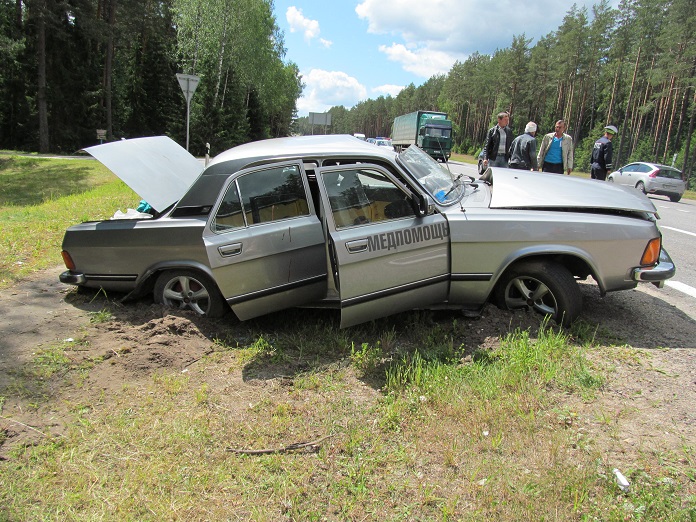 В результате столкновения в автомобиле ГАЗ 3102, принадлежащем одному из предприятий Докшиц, пострадала 42-летняя женщина, которая ехала в качестве пассажира. Ей причинены тяжкие телесные повреждения.