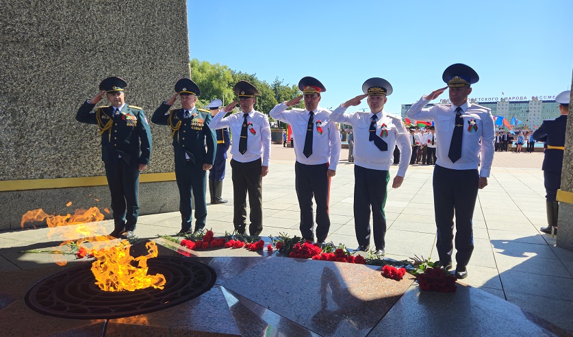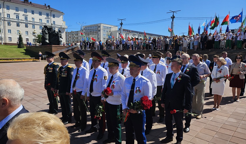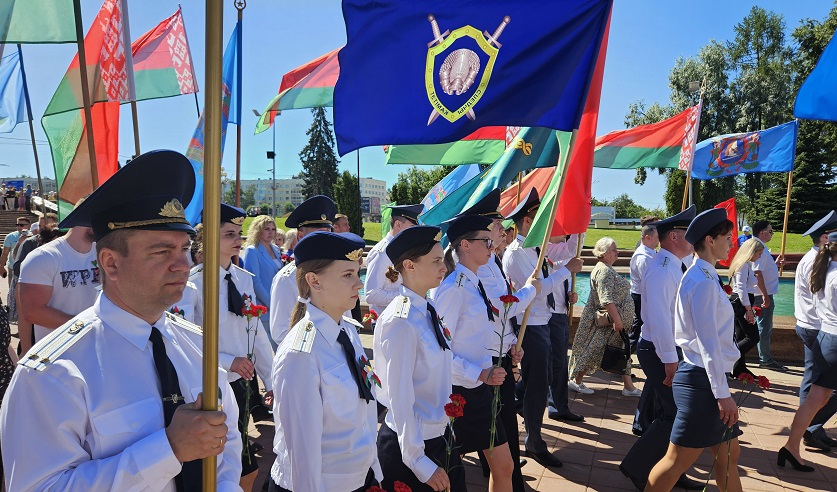 Утром 26 июня начальник управления Следственного комитета по Витебской области Александр Гуцко с сотрудниками ведомства приняли участие в возложении венков и цветов к вечному огню мемориального комплекса в честь советских воинов, партизан и подпольщиков Витебщины.