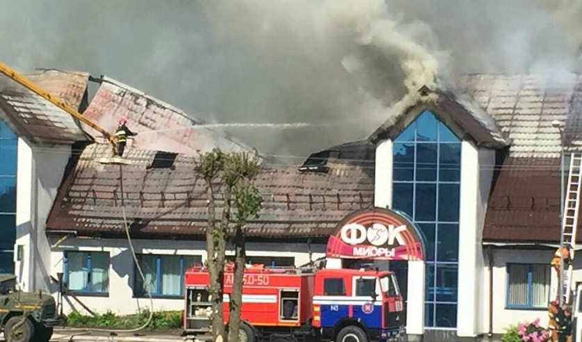 Следователи Миорского районного отдела Следственного комитета приступили к осмотру места происшествия - здания физкультурно-оздоровительного комплекса в районном центре, где 1 июня произошел пожар.