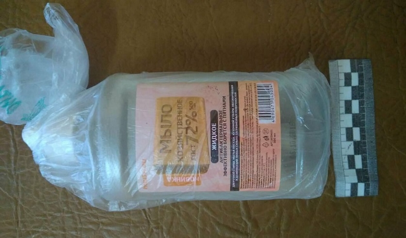 Предположительно установлено, что в пластиковой бутылке из-под жидкого мыла находилась кислота для чистки труб.