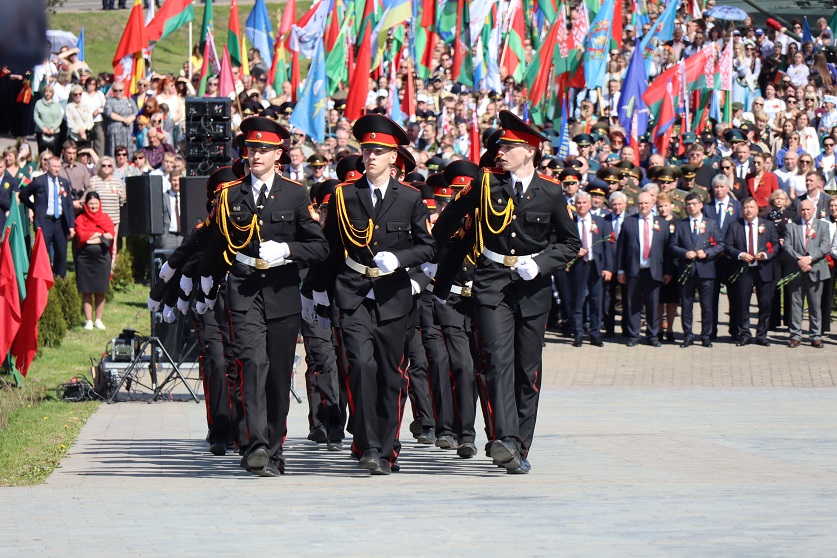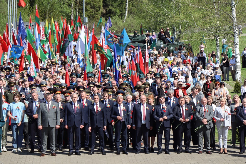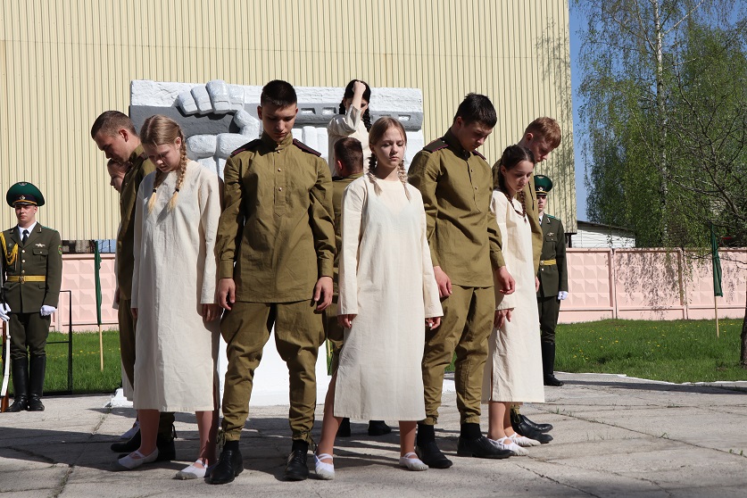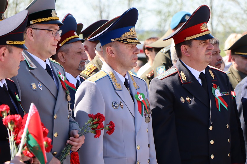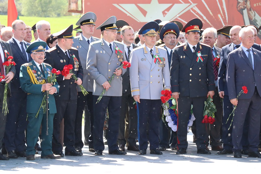 В памятном месте состоялся митинг. Его участники, среди которых генерал-майор юстиции Александр Гуцко, возложили цветы к мемориальным плитам и почтили память погибших в годы Великой Отечественной войны минутой молчания.