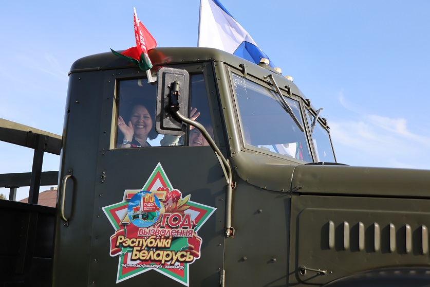 После чего огромная колонна техники направилась в Новополоцк. Там, у мемориального знака партизанскому отряду «Смерть фашизму», который с сентября 1942 года до октября 1943 года дислоцировался в деревнях Зуи и Проварище, собрались местные жители и власти города, чтобы встретить участников автопробега.
