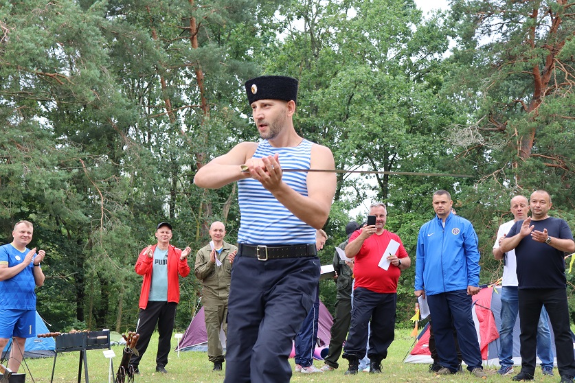 В упражнении "гиря" богатырскую силу продемонстрировал представитель команды УСК по г.Минску Анатолий Ройко, который дальше всех бросил 24-х килограммовый снаряд, принеся победу своей команде в этом виде спортивной программы.