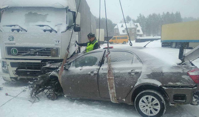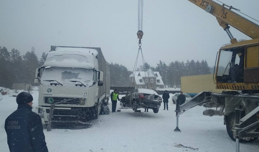 Как сообщалось ранее, в районе деревни Барсуки около 18 часов 20 минут на 139 км автодороги Минск-Витебск автомобиль Geеly SC7, двигавшийся в сторону Минска, столкнулся с автомобилем Volvo с полуприцепом Krone.
