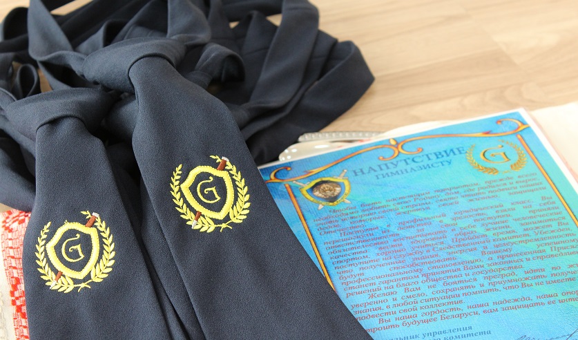 Благодаря следователям Витебской области, 23 ученика 10СК класса получили новую форму и отличительный атрибут, который изображен на галстуках. В созданной эмблеме, вышитой на галстуках, объединилась символика Следственного комитета и знак ГУО «Гимназия №8 г. Витебска».