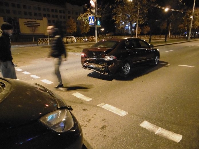 Около 20 часов 25 минут автомобиль NISSAN PRIMERA двигался со скоростью около 60 км/ч по проспекту Московскому со стороны проспекта Победы в сторону улицы Петруся Бровки в Витебске. Приближаясь к регулируемому пешеходному переходу, расположенному напротив дома №43а по проспекту Московскому, перед светофором, на котором был включен красный сигнал, водитель скорость не снизил и не остановился. В результате чего столкнулся со стоящим автомобилем RENAULT MEGANE SCENIC, который, прокатившись от удара вперед, столкнулся со стоящим впереди автомобилем SKODA SUPERB. Во всех пострадавших автомобилях находились пассажиры, в том числе и ребенок, которые были пристегнуты ремнями безопасности.