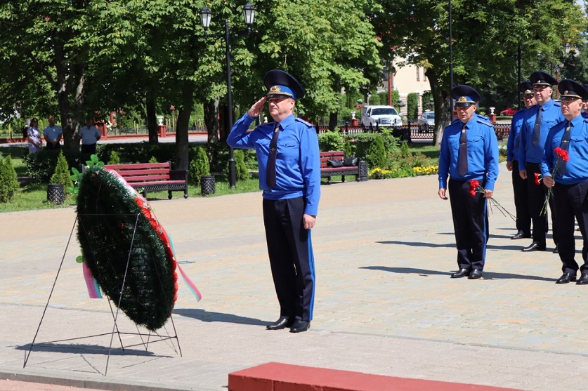 После совещания сотрудники ведомства направились на площадь Свободы, чтобы в год 80-летия освобождения Беларуси от немецко-фашистских захватчиков отдать дань памяти погибшим в боях за Родину. Возложив венок и цветы к памятнику «Освободителям Полоцка», следователи склонили головы во время минуты молчания.