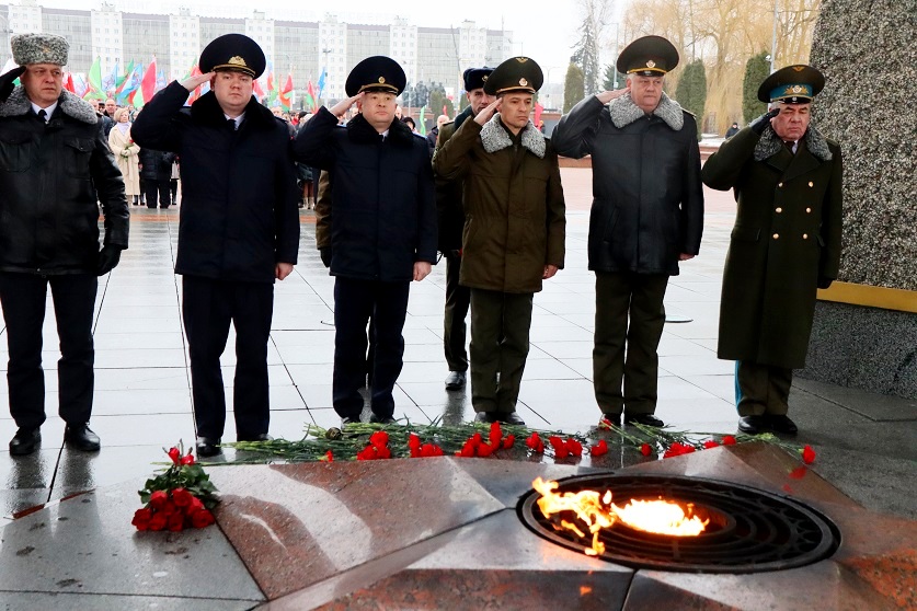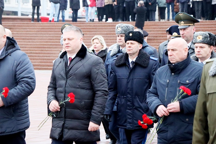 Сегодня утром сотрудники ведомства во главе с начальником управления Следственного комитета по Витебской области Александром Гуцко приняли участие в церемонии возложения венков и цветов к вечному огню мемориального комплекса в честь советских воинов, партизан и подпольщиков Витебщины.