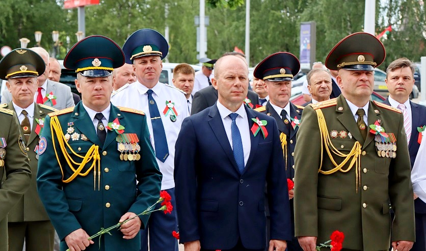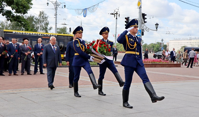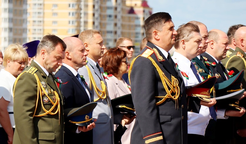 Сотрудники ведомства возложили цветы к монументу воинам-освободителям, партизанам и подпольщикам Витебской области. Все собравшиеся почтили память погибших в годы Великой Отечественной войны минутой молчания.