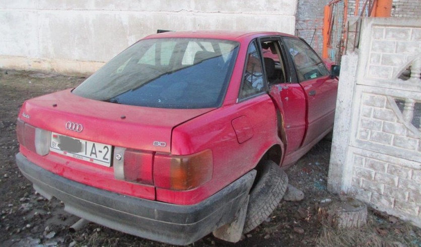 После аварии автомобиль Audi 80 совершил столкновение с фурой, которая была припаркована на противоположной стороне дороги, а затем с бетонной стеной.