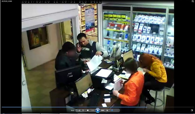 Скриншоты с записи камер видеонаблюдения одного из салонов в момент оформления документов на мобильные телефоны