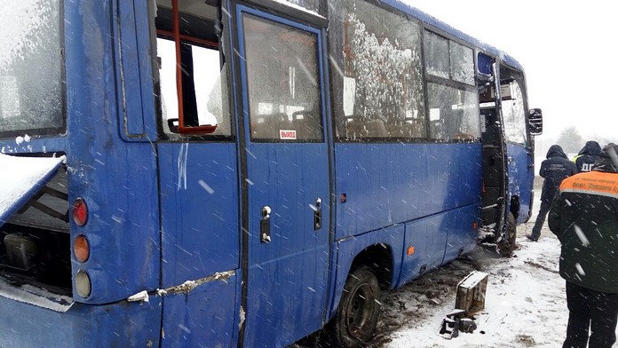 Сегодня около 9 часов водитель, управляя автобусом «МАЗ-256», двигался по автодороге Буда-Кошелево-Уваровичи-Калинино. В пути следования, в деревне Бушевка, на покрытой мокрым снегом проезжей части водитель не справился с управлением, выехал на левую по ходу движения обочину, где совершил наезд на опору линии электропередач. После этого автобус опрокинулся.